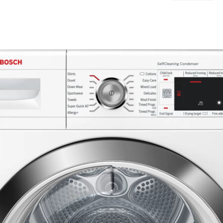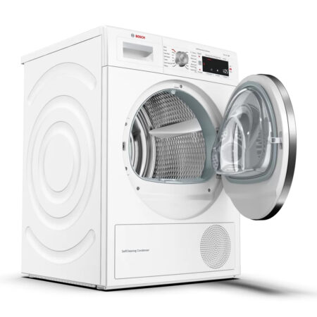 Bosch Serie 8 WTW87561GB. Apparaatplaatsing: Vrijstaand, Type lader: Voorbelading, Droogsysteem: Warmtepomp. Nominale capaciteit: 9 kg, Condensatie-efficiëntieklasse: A, Droogprogramma’s: Auto, Wol, Mix, Sport, Droogtijd instelbaar, Snel, Delicaat/zijde, Katoen, Handdoek, Cupboard dry. Startvertraging: 24 uur. Energie-efficiëntieklasse: A++, Energie consumptie: 2,06 kWu, Jaarlijks energieverbruik: 259 kWu. Diepte: 652 mm, Breedte: 598 mm, Hoogte: 842 mm