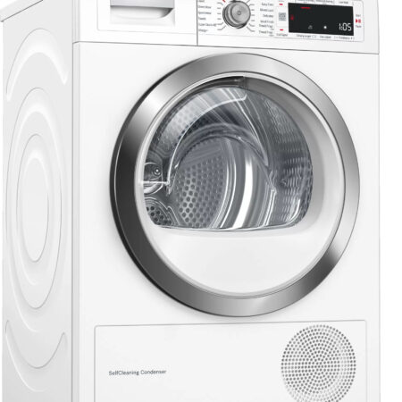 Bosch Serie 8 WTW87561GB, Vrijstaand, Voorbelading, Warmtepomp, Wit, Draaiknop, Touch, Rechts
