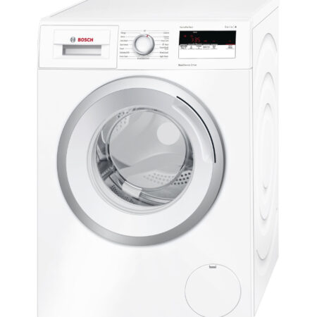 Bosch Serie 4 WAN24100GB. Type lader: Voorbelading. Nominale capaciteit: 7 kg, Centrifuge-droger klasse: B, Geluidsniveau bij centrifugeren: 74 dB. Wasklasse: A. Geluidsniveau (wassen): 54 dB, Maximale centrifugesnelheid: 1200 RPM. Jaarlijkse energieverbruik wassen: 157 kWu, Jaarlijks waterverbruik wassen: 9020 l. Kleur van het product: Wit. Breedte: 598 mm, Diepte: 550 mm, Hoogte: 848 mm
