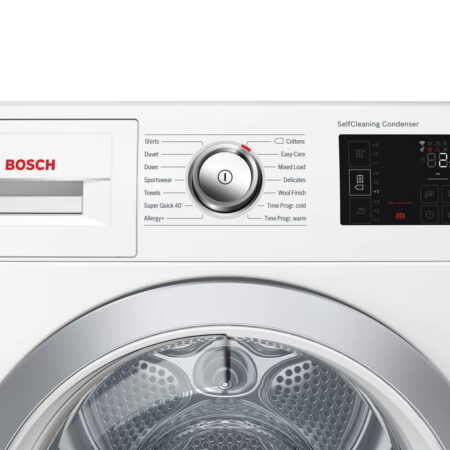 Bosch Serie 6 WTWH7660GB, Vrijstaand, Voorbelading, Warmtepomp, Wit, Draaiknop, Touch, Rechts