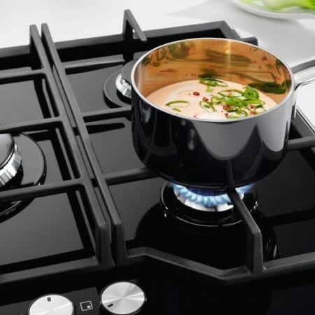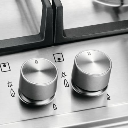 De Electrolux EGG6426SK gaskookplaat met zwarte glaskeramische afwerking is voorzien van 4 branders, gietijzeren grills en een automatisch gasafsluitsysteem wanneer de vlam uit is.