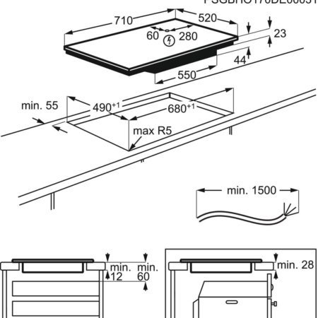 - Middelste zone vooraan – vermogen / diameter: 1400 / 2500W / 145mm