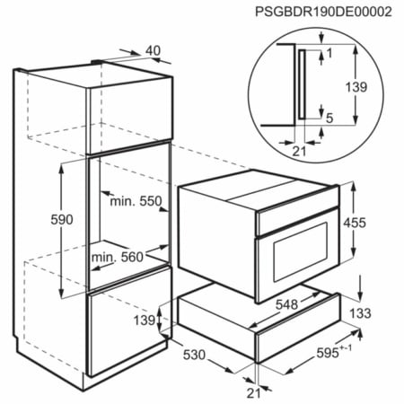 Afmetingen in Hoogte x Breedte x Diepte in mm: 140x596x535