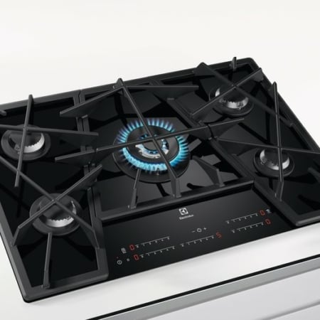 De Electrolux KGV7539IK kookplaat is voorzien van 5 gaspitten, heldere LED bediening, speciale gietijzeren roosters, Sicurgas veiligheidssysteem en Hob2Hood afzuigkap-vloer aansluiting.