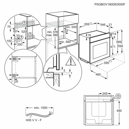 Afmetingen in Hoogte x Breedte x Diepte in mm: 594x595x567