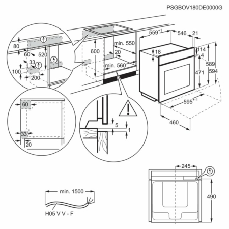 Inbouw afmetingen Hoogte x Breedte x Diepte in mm: 590x560x550