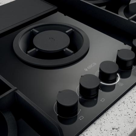 Elica NIKOLATESLA FLAME BL/F/83, Zwart, Ingebouwd, 88 cm, Gaskookplaat, Gietijzer, 4 zone(s)