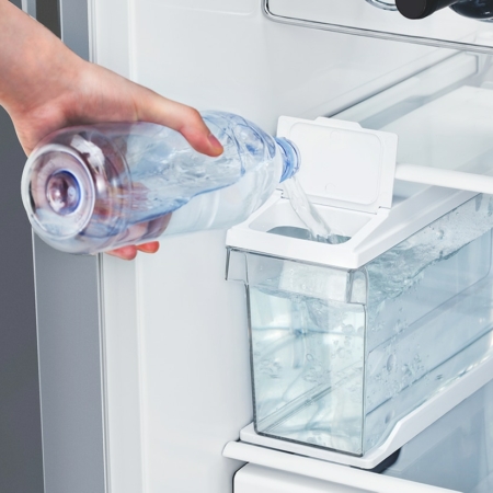 Stijlvol, luxe en duurzaam: deze Amerikaanse koelkast in trendy zwart heeft een water- en ijsdispenser en is voorzien van de nieuwste, duurzame koeltechnieken. Dankzij het waterreservoir met een inhoud van 4,5 liter in het koelgedeelte hoeft de Amerikaanse koelkast niet op een waterleiding aangesloten te worden. De koel-vriescombinatie is stiller en energiezuiniger door de zogeheten Inverter Compressor die ook temperatuurschommelingen vermindert. Het koelgedeelte, aan de rechterzijde, biedt een zee aan opbergruimte en heeft een handig flessenrek. De MultiFlow 360° achterwand zorgt in zowel het koel- als vriesgedeelte van de AKV578IZWA voor een gelijkmatige temperatuur, zodat alle etenswaren langer gebruikt kunnen worden. Ook is het koelgedeelte uitgerust met een luchtfilter die nare luchtjes tegengaat. De No-Frost Plus van ETNA maakt voorgoed een einde aan het ontdooien van de vriezer en gaat ook condensvorming in het koelgedeelte tegen.