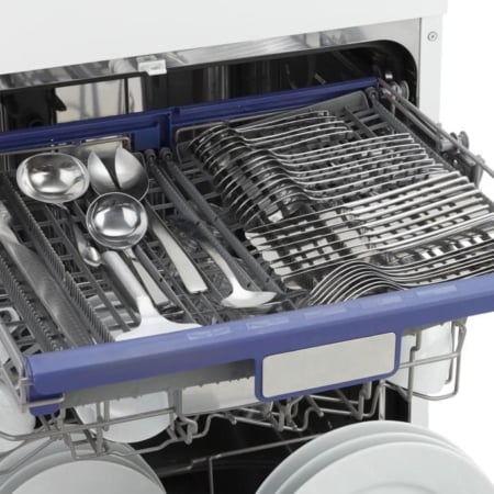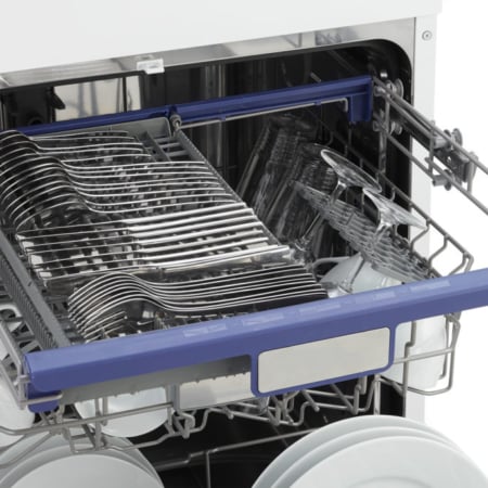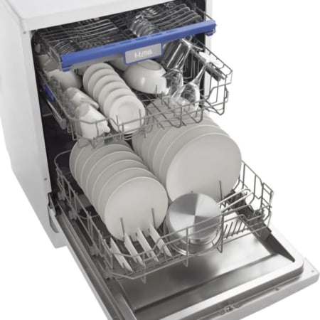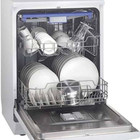 Deze luxe, vrijstaande vaatwasser is ruim, flexibel en duurzaam. Zo heeft de ETNA VWV242WIT ruimte voor maar liefst 14 couverts, een uitneembare FLEXlade voor bestek en een bovenkort die, met belading, in hoogte verstelbaar is. Het LED display geeft een resttijdindicatie en aan het einde van een programma gaat de deur automatisch een klein stukje open (instelbaar). Dit bespaart energie en maakt de vaat extra goed droog. De VWV242WIT heeft acht verschillende programma’s, vijf reinigingstemperaturen en de optie om de vaatwasser op halve belading en extra droog in te stellen. Ook makkelijk: de start van een programma kan tot 24 uur uitgesteld worden, zodat de vaat klaar is wanneer het jou uitkomt.