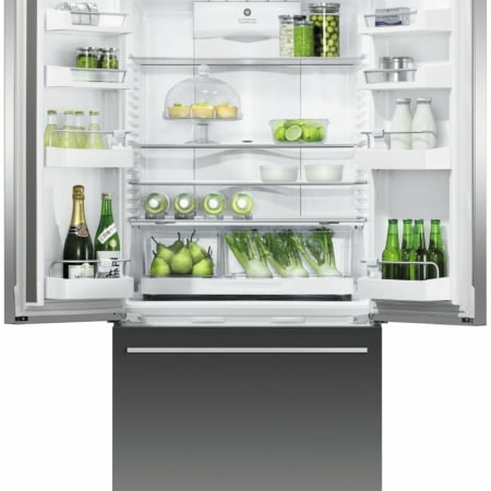 Fisher & Paykel RF522ADB5. Apparaatplaatsing: Ingebouwd/vrijstaand, Productontwerp: Frans deur, Kleur van het product: Roestvrijstaal. Totale nettocapaciteit: 443 l, Klimaatklasse: T, Geluidsniveau: 43 dB. Nettocapaciteit koelkast: 338 l. Nettocapaciteit vriezer: 105 l, Vriezer positie: Onder, Vriescapaciteit: 9 kg/24u. Jaarlijks energieverbruik: 365 kWu, Energie-efficiëntieschaal: A tot G, AC-ingangsspanning: 220 – 240 V