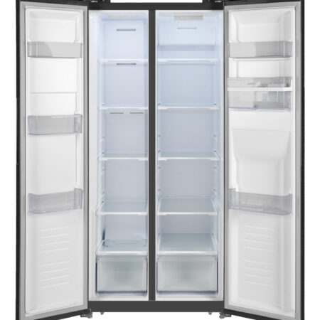 Fridgemaster MS83430DES. Apparaatplaatsing: Vrijstaand, Productontwerp: Amerikaanse deur, Kleur van het product: Zilver. Totale nettocapaciteit: 440 l, Klimaatklasse: N-T, Geluidsemissieklasse: C. Nettocapaciteit koelkast: 267 l, Brutocapaciteit koelkast: 267 l, Soort lamp: LED. Nettocapaciteit vriezer: 173 l, Vriezer positie: Ernaast, Vriescapaciteit: 12 kg/24u. Energie-efficiëntieklasse: E, Jaarlijks energieverbruik: 288 kWu, Energie-efficiëntieschaal: A tot F