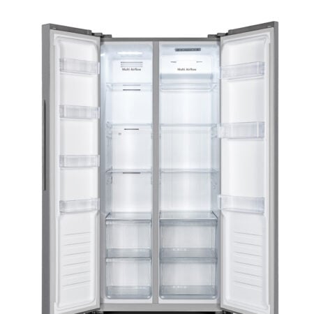 Fridgemaster MS83430ES. Apparaatplaatsing: Vrijstaand, Productontwerp: Amerikaanse deur, Kleur van het product: Zilver. Totale nettocapaciteit: 441 l, Klimaatklasse: SN-N, Geluidsemissieklasse: D. Nettocapaciteit koelkast: 266 l, Soort lamp: LED. Nettocapaciteit vriezer: 175 l, Vriezer positie: Ernaast, Vriescapaciteit: 12 kg/24u. Snoerlengte: 2 m