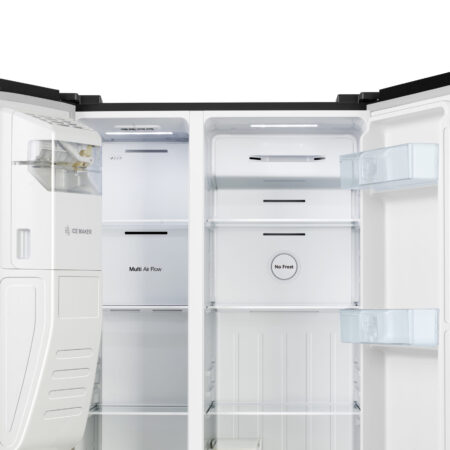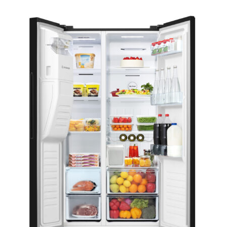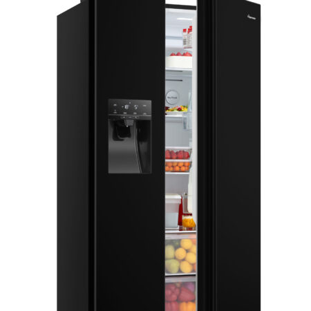 Fridgemaster MS91500IEB. Apparaatplaatsing: Vrijstaand, Productontwerp: Amerikaanse deur, Kleur van het product: Zwart. Totale nettocapaciteit: 499 l, Klimaatklasse: SN-T, Geluidsemissieklasse: D. Nettocapaciteit koelkast: 334 l, Koelkast temperatuurbereik: 2 – 8 °C, Soort lamp: LED. Nettocapaciteit vriezer: 165 l, Vriezer positie: Ernaast, Vriescapaciteit: 12 kg/24u. Snoerlengte: 2 m