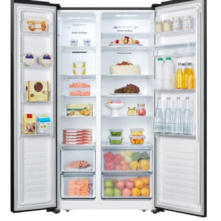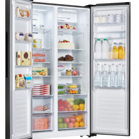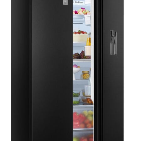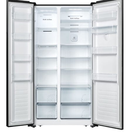 FridgemasterFridgemaster MS91520DEB, Vrijstaand, Amerikaanse deur, Zwart, LED, Op de deur, Gehard glas