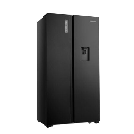 Fridgemaster MS91520DEB. Apparaatplaatsing: Vrijstaand, Productontwerp: Amerikaanse deur, Kleur van het product: Zwart. Totale nettocapaciteit: 519 l, Klimaatklasse: N-ST, Geluidsemissieklasse: D. Nettocapaciteit koelkast: 334 l, Soort lamp: LED. Nettocapaciteit vriezer: 185 l, Vriezer positie: Ernaast, Vriescapaciteit: 11 kg/24u. Snoerlengte: 2 m