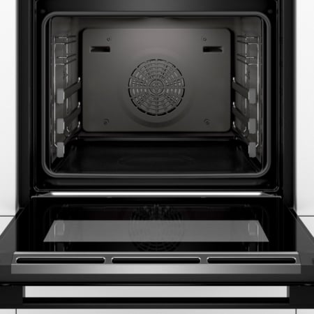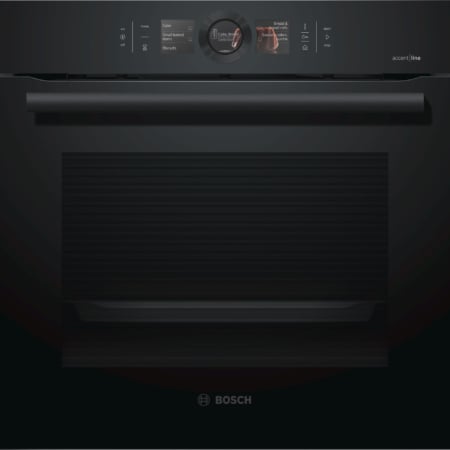 Bosch Serie 8 HSG856XC6. Grootte oven: Middelmaat, Soort oven: Elektrische oven, Totale binnen capaciteit (ovens): 71 l. Apparaatplaatsing: Ingebouwd, Kleur van het product: Zwart, Soort bediening: Touch. Soort klok: Elektronisch. Energie-efficiëntieklasse: A+, Energieverbruik (conventioneel): 0,87 kWu, Energieverbruik (geforceerde convectie): 0,69 kWu. Soort lamp: LED