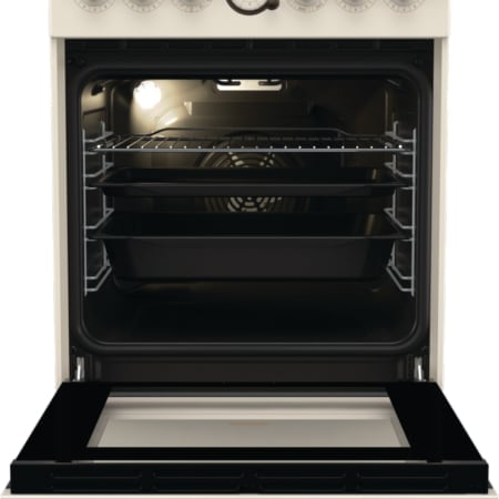 Gorenje GECS5B70CLI. Type product: Vrijstaand fornuis, Kleur van het product: Ivoor, Soort bediening: Draaiknop. Type kookplaat: Keramisch, Aantal branders/kookzones: 4 zone(s), Aantal elektronische kook zones: 4 zone(s). Grootte oven: Middelmaat, Voedingsbron oven: Electrisch, Netto capaciteit oven: 70 l. Energie-efficiëntieklasse: A, Energieverbruik (conventioneel): 0,98 kWu, Aangesloten lading (elektrisch): 9201 W. Breedte: 500 mm, Diepte: 594 mm, Hoogte: 850 mm