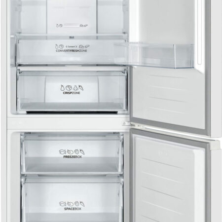 Gorenje N619EAW4. Totale nettocapaciteit: 304 l. Deurscharnieren: Rechts, Type beeldscherm: LED. Klimaatklasse: SN-ST, Geluidsniveau: 39 dB. Nettocapaciteit koelkast: 207 l, No Frost (koelkast), Multi-luchtwegsysteem (koelkast), Koelkast binnenverlichting. Nettocapaciteit vriezer: 97 l, Vriescapaciteit: 9 kg/24u, No Frost (vriezer). Energie-efficiëntieklasse: E, Jaarlijks energieverbruik: 243 kWu. Kleur van het product: Wit