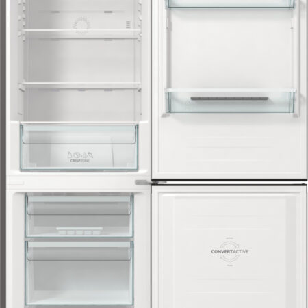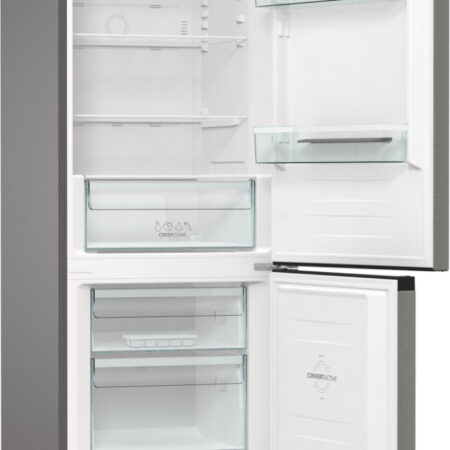 Gorenje NRC61CSXL4. Totale nettocapaciteit: 326 l. Deurscharnieren: Rechts, Type beeldscherm: LED. Klimaatklasse: SN-T, Geluidsniveau: 35 dB. Nettocapaciteit koelkast: 194 l, No Frost (koelkast), Multi-luchtwegsysteem (koelkast), Koelkast binnenverlichting. Nettocapaciteit vriezer: 106 l, Vriescapaciteit: 13 kg/24u, No Frost (vriezer). Energie-efficiëntieklasse: C, Jaarlijks energieverbruik: 165 kWu. Kleur van het product: Zilver