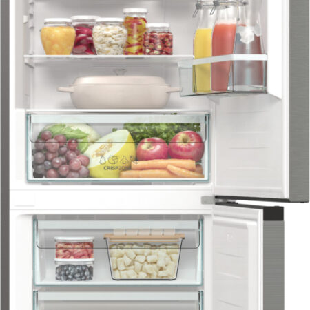 Gorenje NRK61CS2XL4. Totale nettocapaciteit: 300 l. Deurscharnieren: Rechts, Type beeldscherm: LED. Klimaatklasse: N-T, Geluidsniveau: 35 dB. Nettocapaciteit koelkast: 204 l, No Frost (koelkast), Multi-luchtwegsysteem (koelkast), Koelkast binnenverlichting. Nettocapaciteit vriezer: 96 l, Vriescapaciteit: 11 kg/24u, No Frost (vriezer). Energie-efficiëntieklasse: C, Jaarlijks energieverbruik: 155 kWu. Kleur van het product: Grijs