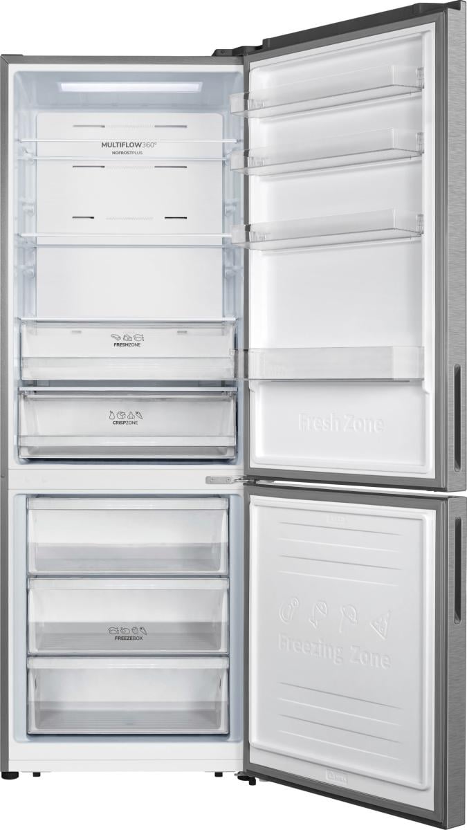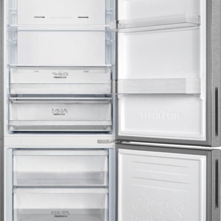 Gorenje NRK720CAXL4. Totale nettocapaciteit: 495 l. Deurscharnieren: Rechts, Type beeldscherm: LED. Klimaatklasse: SN-T, Geluidsniveau: 35 dB. Nettocapaciteit koelkast: 345 l, No Frost (koelkast), Multi-luchtwegsysteem (koelkast), Koelkast binnenverlichting. Nettocapaciteit vriezer: 150 l, Vriescapaciteit: 10 kg/24u, No Frost (vriezer). Vers zone compartiment. Energie-efficiëntieklasse: C, Jaarlijks energieverbruik: 190 kWu