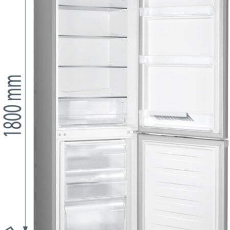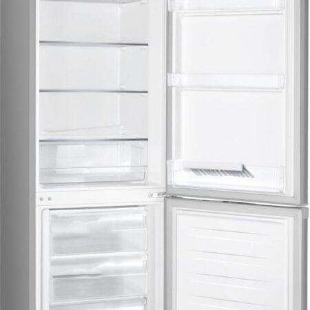 Gorenje RK418DPS4. Totale nettocapaciteit: 269 l. Deurscharnieren: Rechts. Klimaatklasse: N-ST, Geluidsniveau: 39 dB. Nettocapaciteit koelkast: 198 l, Koelkast binnenverlichting, Aantal planken koelkast: 3, Aantal groente lades: 1. Nettocapaciteit vriezer: 71 l, Vriescapaciteit: 3,2 kg/24u. Energie-efficiëntieklasse: D, Jaarlijks energieverbruik: 168 kWu. Kleur van het product: Grijs