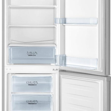Gorenje RK418DPS4. Totale nettocapaciteit: 269 l. Deurscharnieren: Rechts. Klimaatklasse: N-T, Geluidsniveau: 39 dB. Nettocapaciteit koelkast: 198 l, Koelkast binnenverlichting, Aantal planken koelkast: 4, Aantal groente lades: 1. Nettocapaciteit vriezer: 71 l, Vriescapaciteit: 3 kg/24u. Energie-efficiëntieklasse: E, Jaarlijks energieverbruik: 210 kWu. Kleur van het product: Grijs