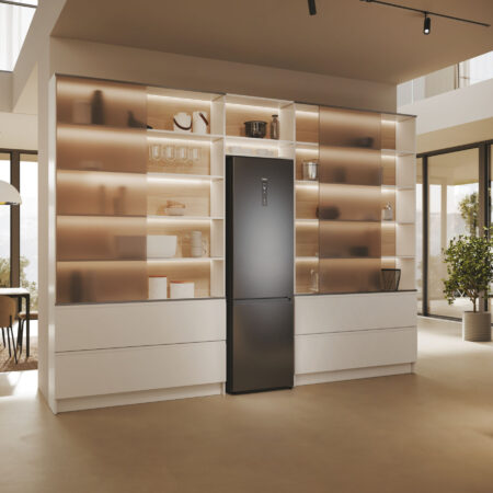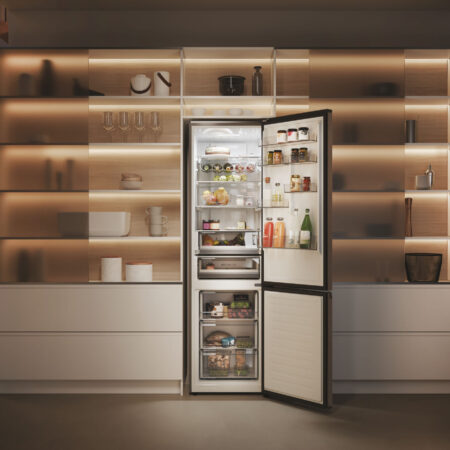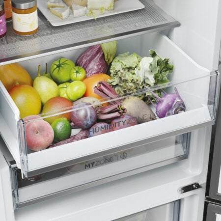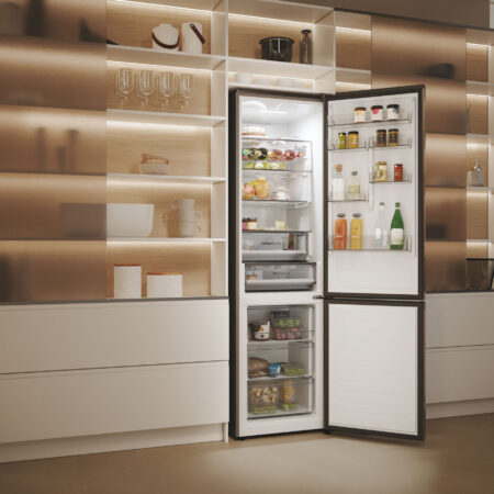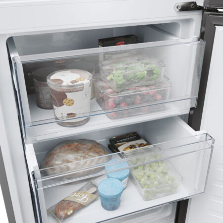 De Two Doors 60-serie van Haier, met een breedte van 60 cm, een koelkast boven en een vriezer onder, is de perfecte combinatie van chic design en onberispelijke prestaties dankzij geavanceerde functies. De 2D Serie 5 PRO koelkasten van Haier garanderen een perfecte conservering van uw voedsel dankzij gespecialiseerde zones, geavanceerde technologie en andere oplossingen in zowel het koel- als het vriesgedeelte. Bovendien bieden ze een grote capaciteit en een verminderd energieverbruik tot energieklasse A, waardoor ze het milieu respecteren en geld besparen. Dankzij hOn App, Artificial Intelligence en wifi-connectiviteit bieden ze innovatieve functies die anticiperen op uw behoefte aan versheid.