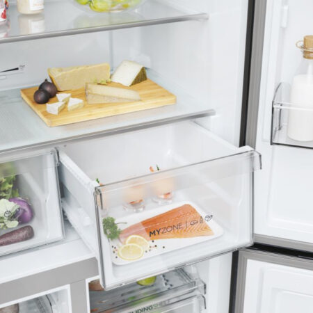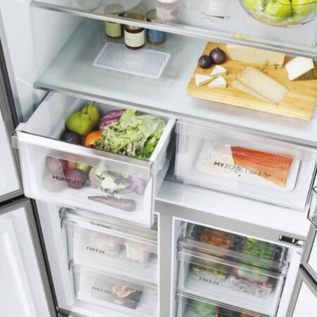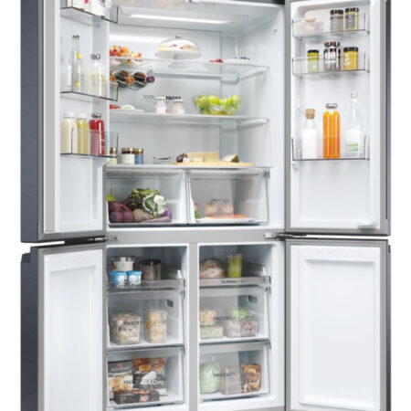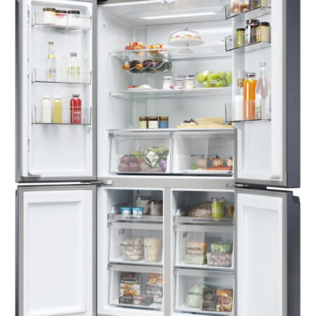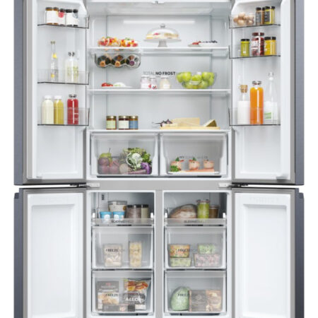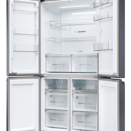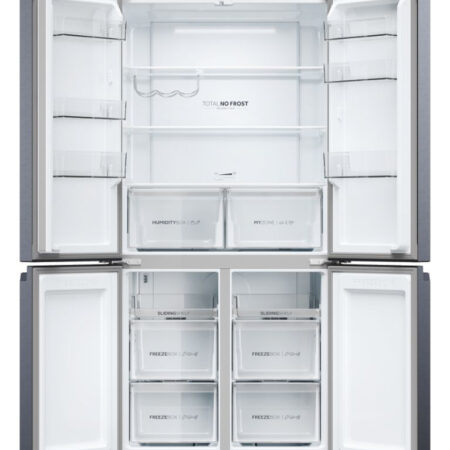 Haier HCR5919ENMB. Apparaatplaatsing: Vrijstaand, Productontwerp: Amerikaanse deur, Kleur van het product: Grijs. Totale nettocapaciteit: 528 l, Klimaatklasse: SN-T, Geluidsemissieklasse: C. Nettocapaciteit koelkast: 354 l, Soort lamp: LED. Nettocapaciteit vriezer: 174 l, Vriezer positie: Onder, Bewaartijd bij stroomuitval: 9 uur. Energie-efficiëntieklasse: E, Jaarlijks energieverbruik: 329 kWu, AC-ingangsspanning: 220/240 V