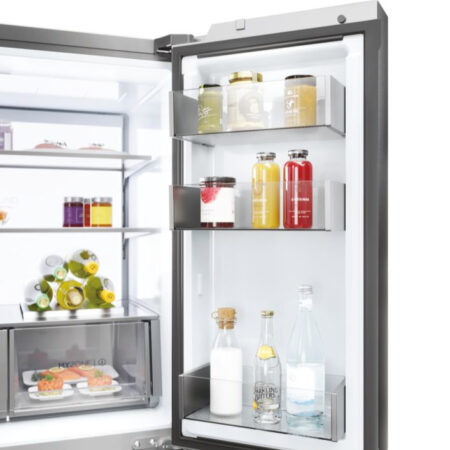 HaierHaier HCR7918EIMP, Vrijstaand, Frans deur, Platina, Roestvrijstaal, Glas, Zilveren frame, Kunststof