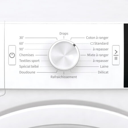Hisense DHGE901, Vrijstaand, Voorbelading, Warmtepomp, Wit, Draaiknop, Touch, Rechts