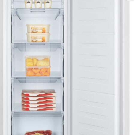Deze prachtige vriezer neemt weinig ruimte in beslag en biedt een grote opslagcapaciteit. Dankzij het moderne platte deurontwerp past hij perfect in elke keuken.