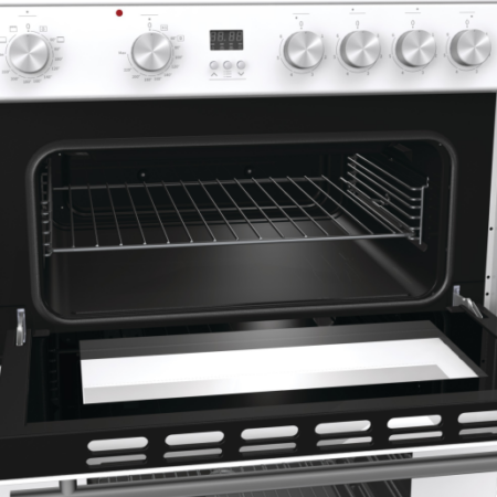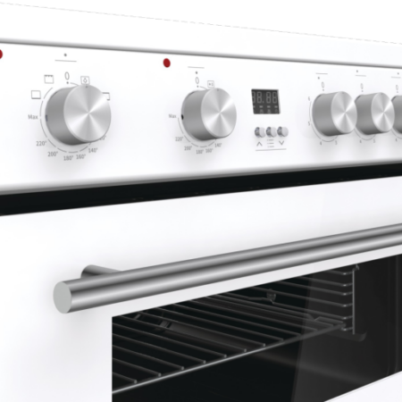 Hisense HDE3211BWUK. Type product: Vrijstaand fornuis, Kleur van het product: Wit, Soort bediening: Draaiknop. Type kookplaat: Keramisch, Aantal branders/kookzones: 4 zone(s), Soort materiaal (bovenkant): Keramisch. Grootte oven: Groot, Voedingsbron oven: Electrisch, Netto capaciteit oven: 68 l. Oven 2 afmetingen: Klein, Oven 2 voedingsbron: Electrisch, Oven 2 positie: Boven. Energie-efficiëntieklasse: A, Energieverbruik (conventioneel): 0,79 kWu, Oven 2 energie-efficiëntieklasse: A+