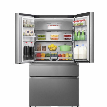Hisense RF749N4WIF. Apparaatplaatsing: Vrijstaand, Productontwerp: Frans deur, Kleur van het product: Roestvrijstaal. Totale nettocapaciteit: 579 l, Klimaatklasse: ST-T, Geluidsemissieklasse: C. Nettocapaciteit koelkast: 367 l, Koelkast temperatuurbereik: 2 – 8 °C, Soort lamp: LED. Nettocapaciteit vriezer: 212 l, Vriezer positie: Onder, Vriescapaciteit: 7 kg/24u. Converteerbare compartiment temperatuurbereik: -18 – 5 °C