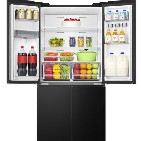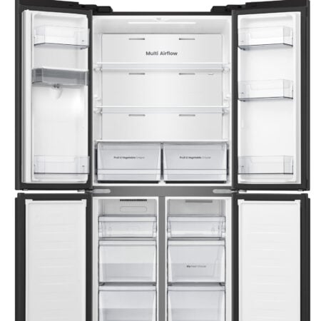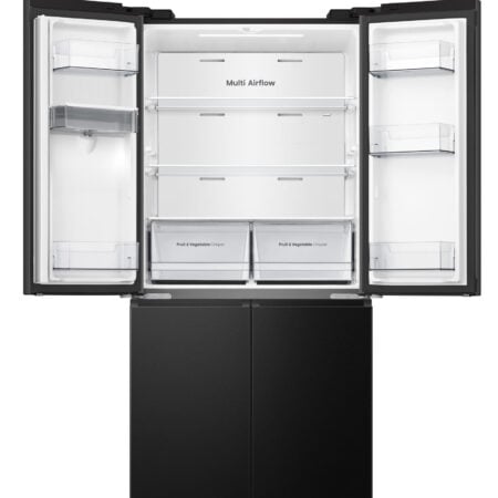 Hisense RQ5P470SMFE. Totale nettocapaciteit: 482 l. Deurscharnieren: Links, Type beeldscherm: LED. Klimaatklasse: SN-T, Geluidsniveau: 37 dB. Nettocapaciteit koelkast: 303 l, No Frost (koelkast), Multi-luchtwegsysteem (koelkast), Koelkast binnenverlichting, Aantal planken koelkast: 2. Nettocapaciteit vriezer: 179 l, Vriescapaciteit: 8 kg/24u, No Frost (vriezer). Energie-efficiëntieklasse: E, Jaarlijks energieverbruik: 293 kWu