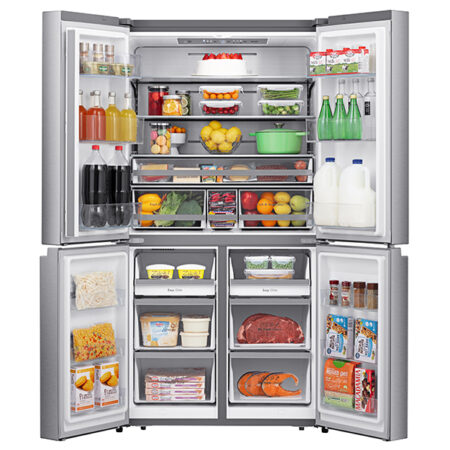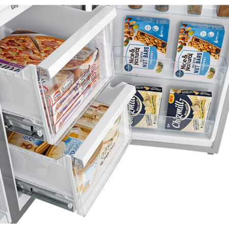 De RQ758N4SAI1 is bijzonder veelzijdige en voorzien van alle gemakken. Dankzij de 4 deurpanelen met geïntegreerde greep maak je optimaal gebruik van de ruimte in je koel- en vriesvak. Extra handig is dat je de temperatuur van de vrieszones apart kunt regelen. Zo kun je producten die je regelmatig gebruikt, zoals brood, op een lagere temperatuur invriezen dan vlees dat je misschien wel een paar maanden in je vriezer wilt bewaren. Flessen kun je gemakkelijk kwijt in de twee deurpanelen, terwijl de ruime crisper lades in de koelkast je fruit en groente langer vers houden.