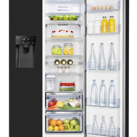 HisenseHisense RS694N4TBE, Vrijstaand, Amerikaanse deur, Zwart, Touch, LED, Gehard glas