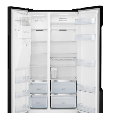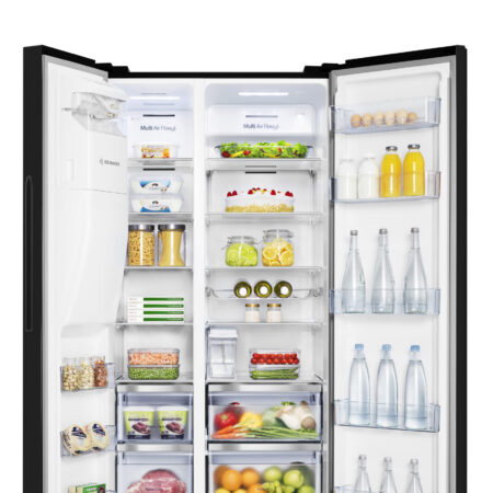 Hisense RS694N4TBF. Apparaatplaatsing: Vrijstaand, Productontwerp: Amerikaanse deur, Kleur van het product: Zwart. Totale nettocapaciteit: 535 l, Klimaatklasse: SN-T, Geluidsemissieklasse: D. Nettocapaciteit koelkast: 368 l. Nettocapaciteit vriezer: 167 l, Vriezer positie: Ernaast, Vriescapaciteit: 13 kg/24u. Snoerlengte: 2 m