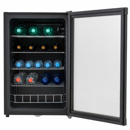 Husky KK110-BK-NL-HU. Producttype: Drankenkoeler, Apparaatplaatsing: Aanrecht, Kleur van het product: Zwart. Totale nettocapaciteit: 122,5 l, Capaciteit flessen: 80 fles(sen), Capaciteit blikjes: 140 blik(ken). Aansluitvermogen: 88 W. Ingangsspanning: 220-240 V, Ingangsfrequentie: 50 Hz, Aantal planken: 3 planken. Breedte: 540 mm, Diepte: 540 mm, Hoogte: 845 mm