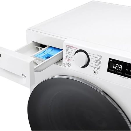 7 serie vrijstaande LG wasmachine, 1400 toeren, trommel met capaciteit van 11 kg wasgoed , direct drive motor met 10 jaar garantie, voorzien van AI DD systeem. Dit weegt het wasgoed en bepaald het type stof voor het optimale wasprogramma, smart diagnosis, TurboWash 360 – wassen in 39 minuten, stoom programma voor voor minder kreukvorming (spa steam), timer voor uitgestelde starttijd, apparaat kan worden gecombineerd met wasmachine verhoging + lade PED24WH (trommel vullen en leeghalen op sta hoogte)