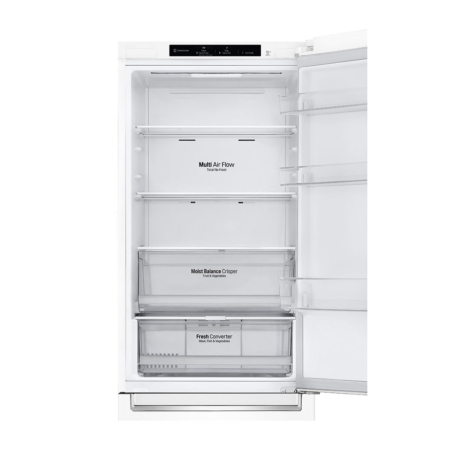 LG GBB61SWGCN1. Totale nettocapaciteit: 341 l. Deurscharnieren: Rechts. Klimaatklasse: SN-T, Geluidsniveau: 35 dB. Nettocapaciteit koelkast: 234 l, No Frost (koelkast), Multi-luchtwegsysteem (koelkast), Koelkast binnenverlichting. Nettocapaciteit vriezer: 107 l, Vriescapaciteit: 10 kg/24u, No Frost (vriezer). Vers zone compartiment. Energie-efficiëntieklasse: C, Jaarlijks energieverbruik: 171 kWu. Kleur van het product: Wit