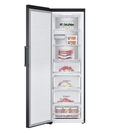 LG GFM61MCCSF. Nettocapaciteit vriezer: 324 l, Klimaatklasse: T, Vriescapaciteit: 19 kg/24u, Bewaartijd bij stroomuitval: 12 uur, Geluidsniveau: 37 dB, No Frost system. Deurscharnieren: Links. Energie-efficiëntieklasse: D, Jaarlijks energieverbruik: 211 kWu. Kleur van het product: Zwart