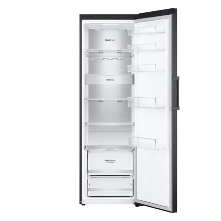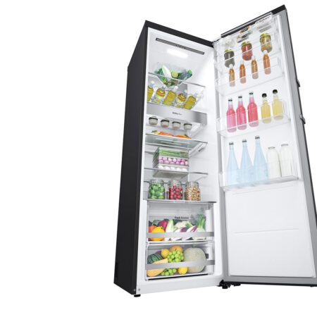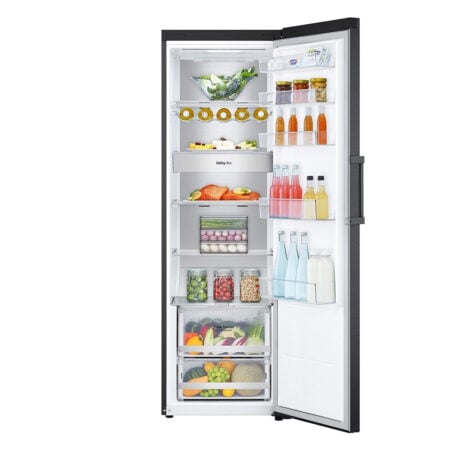 Een opgeruimde koelkast met een slim opbergsysteem dat 386L aan ruimte maximaliseert.