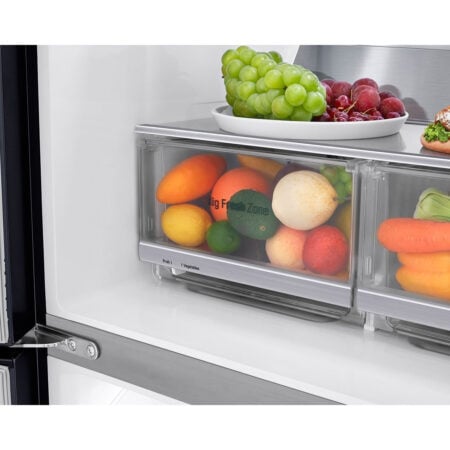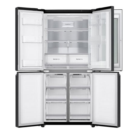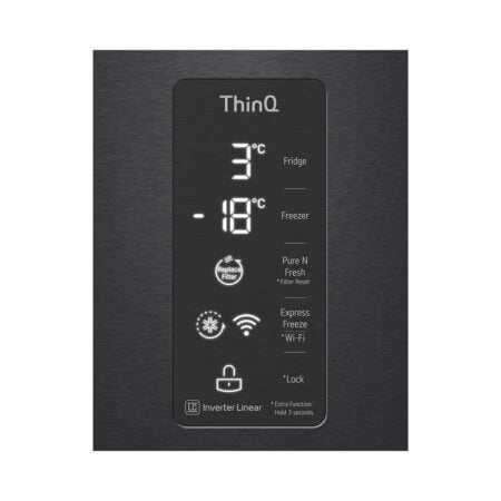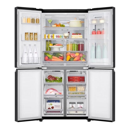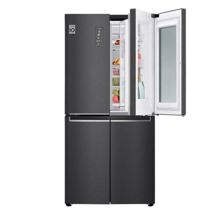 LG InstaView GMQ844MC5E. Apparaatplaatsing: Vrijstaand, Productontwerp: Frans deur, Kleur van het product: Zwart. Totale nettocapaciteit: 530 l, Klimaatklasse: T, Geluidsemissieklasse: C. Nettocapaciteit koelkast: 321 l, Brutocapaciteit koelkast: 320 l, Soort lamp: LED. Nettocapaciteit vriezer: 209 l, Vriezer positie: Onder, Vriescapaciteit: 6,5 kg/24u. Energie-efficiëntieklasse: E, Jaarlijks energieverbruik: 314 kWu, Energie-efficiëntieschaal: A tot G