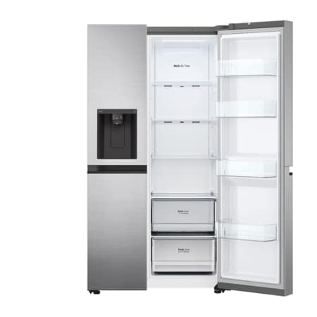 LG GSLV50PZXE. Apparaatplaatsing: Vrijstaand, Productontwerp: Amerikaanse deur, Kleur van het product: Zilver. Totale nettocapaciteit: 635 l, Klimaatklasse: T, Geluidsemissieklasse: C. Nettocapaciteit koelkast: 416 l. Nettocapaciteit vriezer: 219 l, Vriezer positie: Ernaast, Vriescapaciteit: 12 kg/24u. Energie-efficiëntieklasse: E, Jaarlijks energieverbruik: 350 kWu, Energie-efficiëntieschaal: A tot G