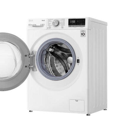 LG V5WD96TW0, Voorbelading, Vrijstaand, Wit, Links, Zwart, Zwart