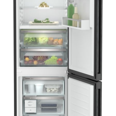 Liebherr CBNbda 5723 Plus. Totale nettocapaciteit: 360 l. Deurscharnieren: Rechts. Klimaatklasse: SN-T, Geluidsniveau: 33 dB. Nettocapaciteit koelkast: 258 l, Koelkast binnenverlichting, Aantal planken koelkast: 4, Aantal groente lades: 2. Nettocapaciteit vriezer: 103 l, Vriescapaciteit: 10 kg/24u, No Frost (vriezer). Energie-efficiëntieklasse: A, Jaarlijks energieverbruik: 116 kWu. Kleur van het product: Zwart