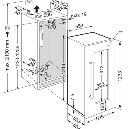 De Liebherr EWTdf 2353 met 2 apart regelbare zones is ideaal voor het bewaren van maximaal 48 flessen rode én witte wijnen op drinktemperatuur. Het frame kan in hetzelfde materiaal als de keuken worden uitgevoerd. Ook kan er worden gekozen voor een RVS paneel voor een tijdloze en professionele look.