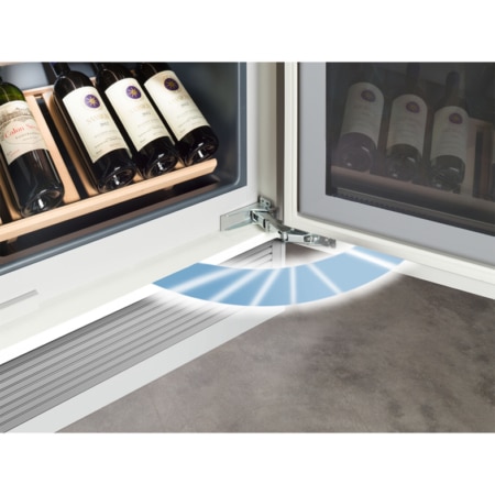 In de Vinidor serie is iedere temperatuurzone uitgerust met LED‘s die bovenin het interieur en onder de tussenplateaus zijn geïntegreerd. Hiermee wordt het interieur gelijkmatig verlicht en kunnen wijnen dankzij de minimale warmteafgifte van LED‘s ook voor langere tijd verlicht worden gepresenteerd.