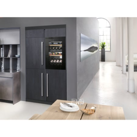 De Liebherr EWTgb 1683 met TipOpen deurtechniek is ideaal in gebruik, ook in greeploze keukens. Maximaal 33 flessen rode én witte wijnen op perfecte drinktemperatuur bewaren dankzij 2 apart regelbare zones. Inbouwmodel met beukenhouten plateaus op telescooprails, dimbare LED-verlichting en SoftSystem deursluiting.